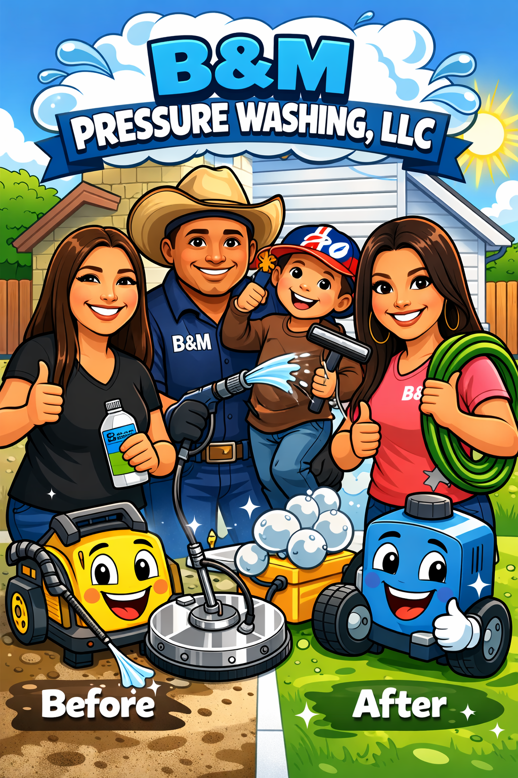When you choose B&M Pressure Washing, LLC, you’re choosing a local family committed to excellence. We promise to show up on time, do the job right the first time, and use safe, professional equipment. Expect friendly, respectful service and our unwavering commitment to standing behind our work. We're dedicated to bringing out the best in your property.